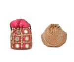 This product is a combo of tow Embellished potli bags having wrist loop 1 main compartment each with drawstring closure. Size & Fit Size of each potli bag : 9 x 9 x 3 Inch (Length x Width x Depth ) Material & Care Fabric Wipe with clean, dry cloth