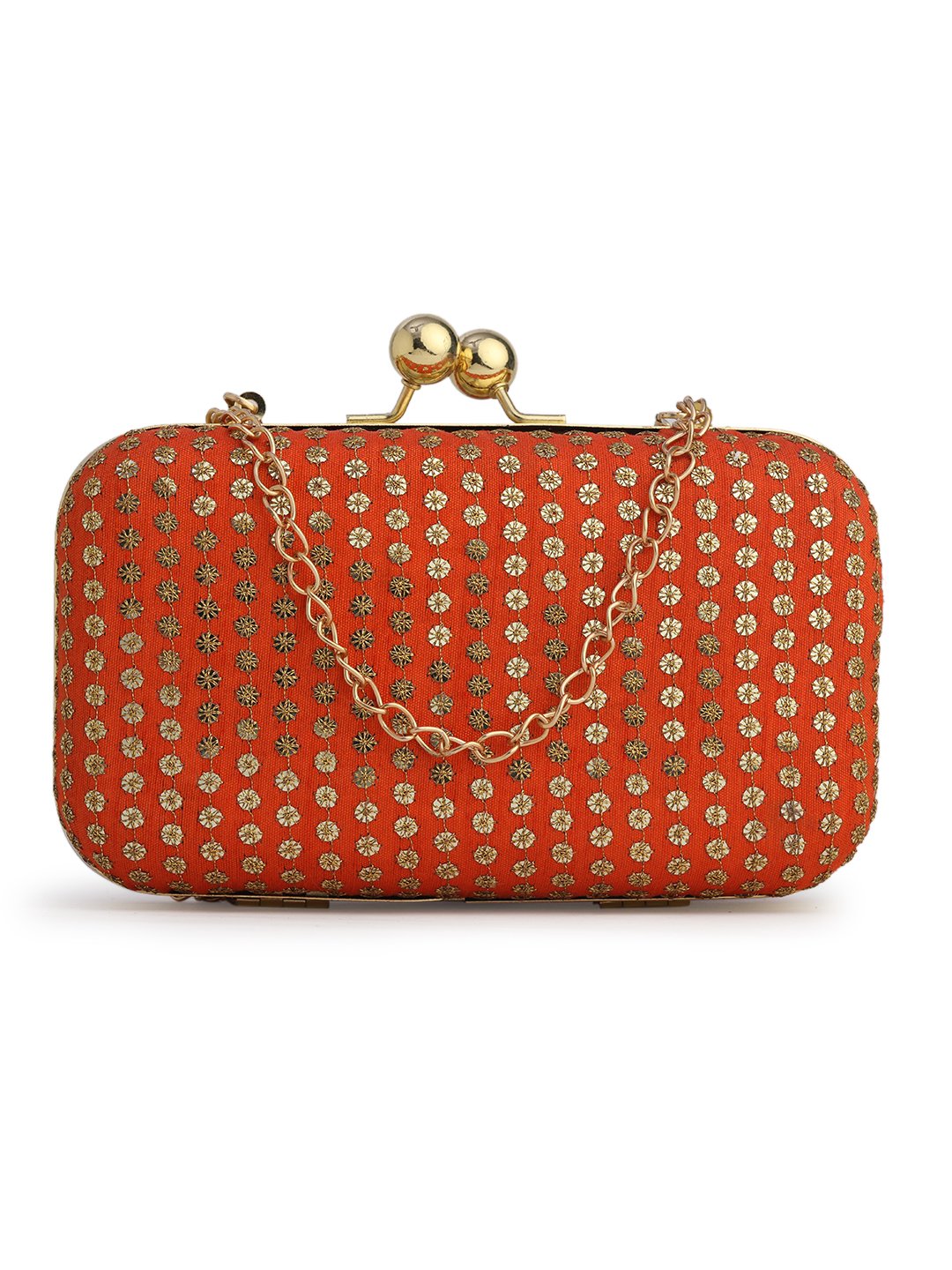 Combo Of Boho Bag And Orange & Gold Embroidered Box Clutches For Girls and womens