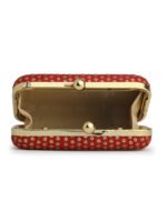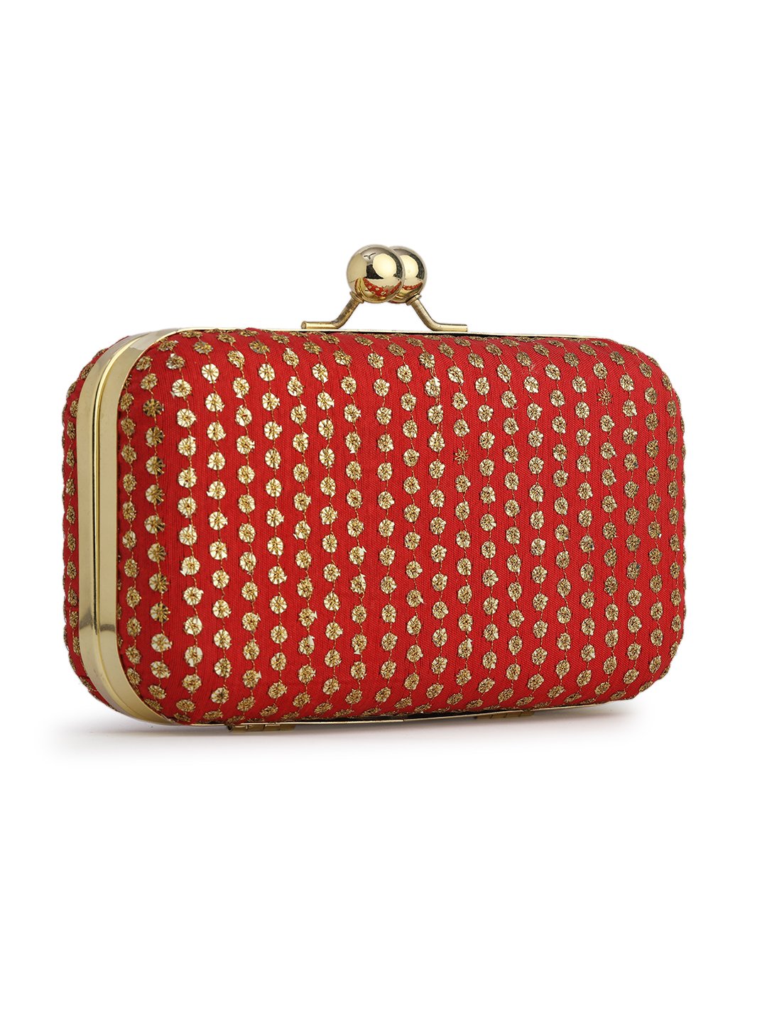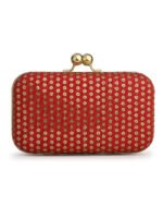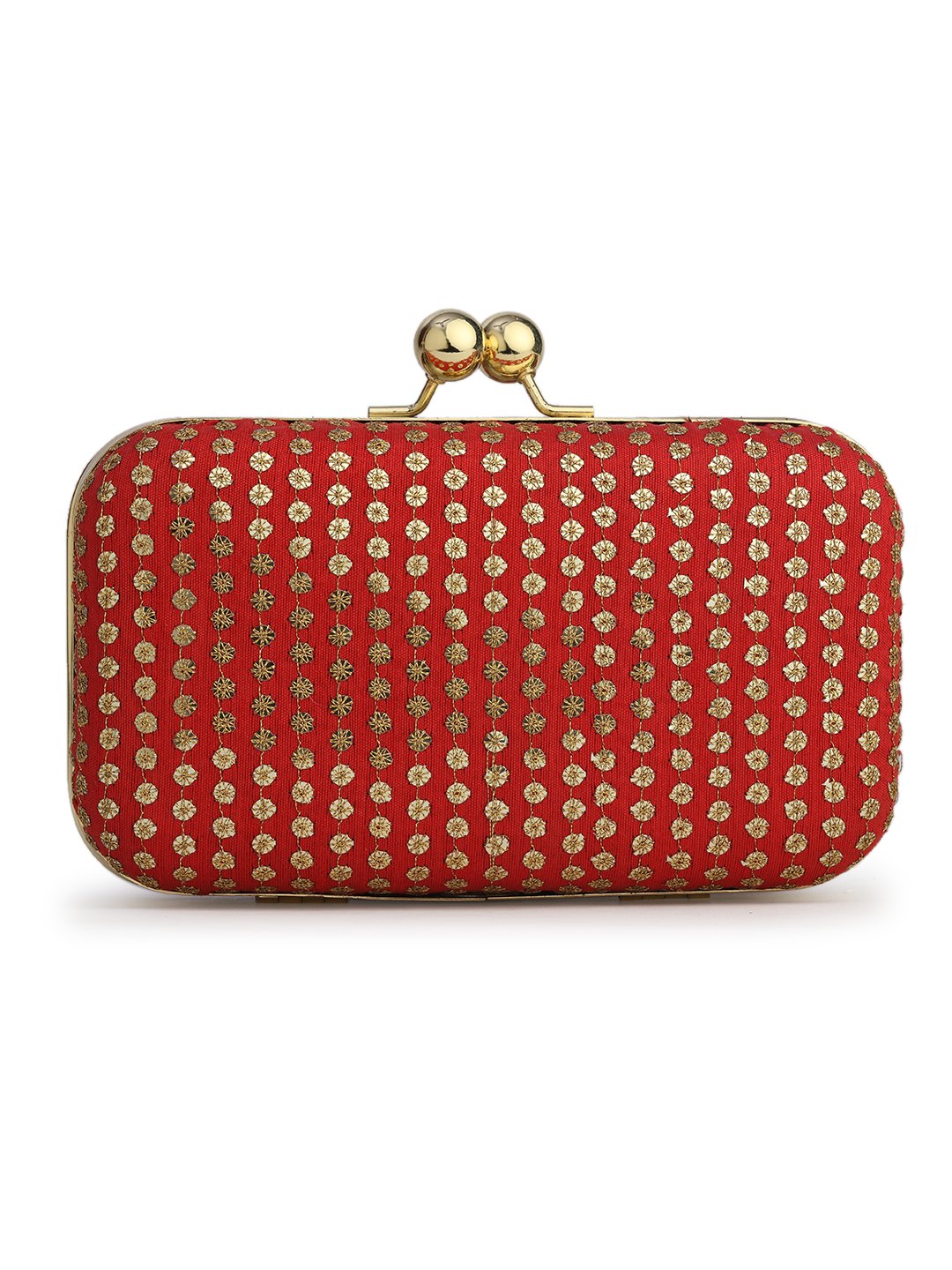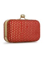Red & Gold Embroidered Box clutches, Has gold chain shoulder strap, 1 main compartment with Kiss closure
