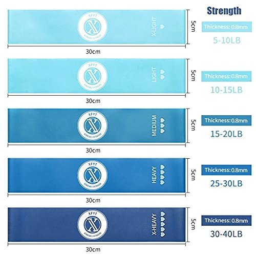 XFYT Resistance Fitness Exercise Loop Bands for Yoga Pilates Gym | Stretchable , Anti Slip , Anti-Skid , Odour Free Workout Therapy Band for abs Upper Body Legs Health Workouts (Set of 5, Blue), Natural Rubber